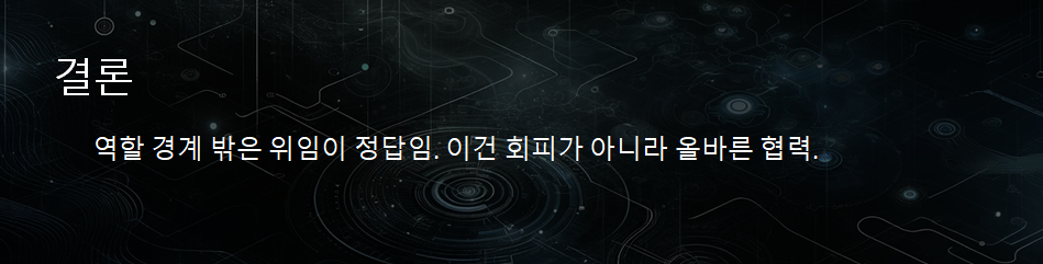 “개발자는 언제나 Yes나 No만 말하는 사람이 아닙니다. 핵심은 어떤 기준으로 판단하고, 무엇을 지키며, 어떻게 협력하느냐 입니다.”