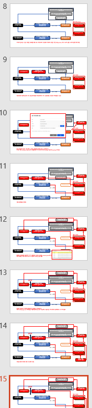 • 상사에게 결정 사항에 관해 질문하는 경우의 예시도 마찬가지로 블로그에 올리기가 상당히 난감하다. 질문을 위해 내 상황을 글로 적어보는 과정에서 만들어본 자료의 썸네일만 보면 다음과 같다.