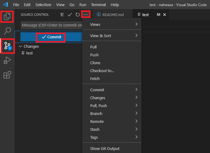 이제 수정 후에 Version Control 부분에서 git 명령들을 사용할 수 있다.