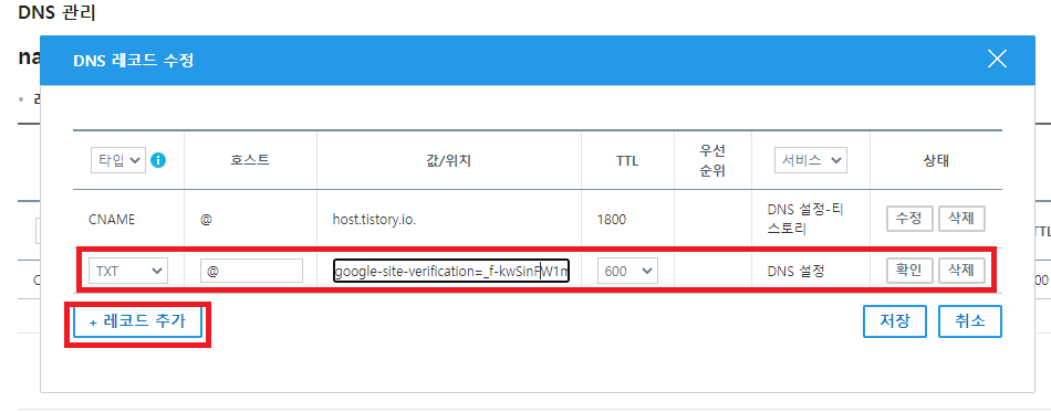 개인 도메인 티스토리 블로그 - 구글 검색 등록 (가비아 DNS 기준)
