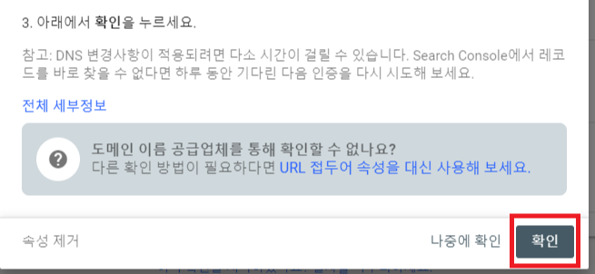 4. 그다음 GSC에서 '확인'