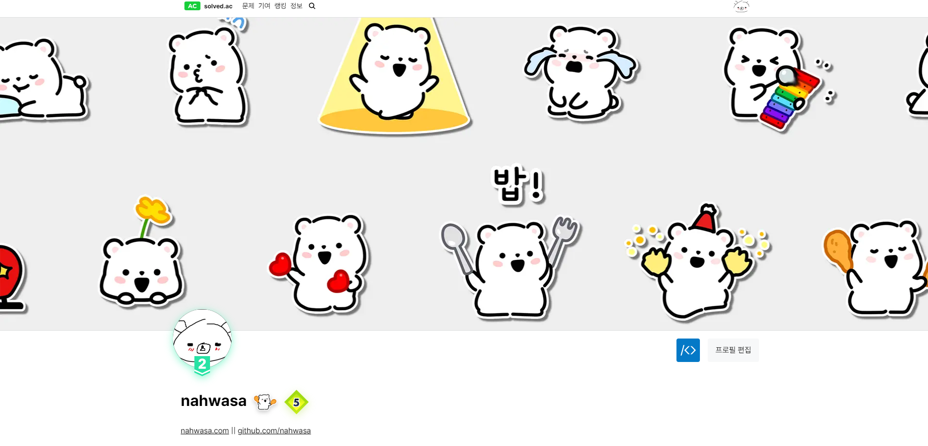 단점은 솔브닥 배경은 안주고 뱃지만 준다고 한다. 그래도 곰곰 귀여워!
