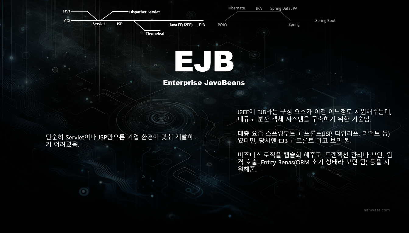 요즘 스프링부트를 표준처럼 쓰는 것 처럼, 당시엔 EJB를 표준처럼 써야 했다고 합니다.