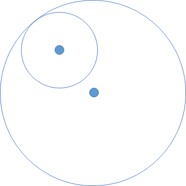 3. A와 B가 동일한 위치이고 둘의 r이 다른 경우