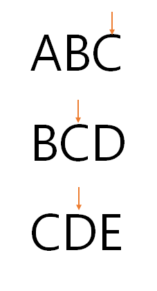 위의 과정을 통해 차례대로 'ABBCCCDDE' 라는 문자열이 출력되었다. 이 과정이 코드의 24~27 line에 해당한다. 이 때 포인터는 코드의 idxs[]에 해당한다.) 하지만 사실 위의 로직만 단순하게 진행해서는 답을 구할 수 없다.