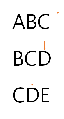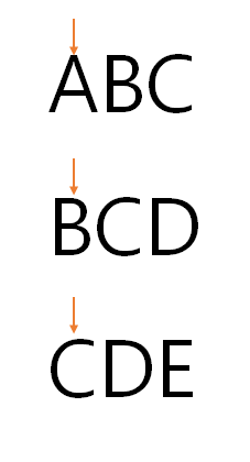 1.1 시작은 아래와 같다. 화살표가 현재 각 문자열에서 보고 있는 문자이다.