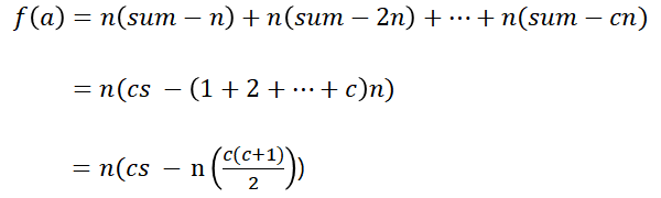 answer += 1l*a*(c*s-a*(c*(c+1)/2));