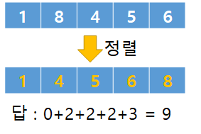 그런데 사실 더 쉬운 방법이 있다. 어차피 (|A-B|)의 합의 최소값을 구하는 것이므로, 그냥 처음부터 전체를 정렬한 후 1~N에 순서대로 매칭시켜도 '1'과 동일한 답을 구할 수 있다. 어차피 1~N까지로 크기가 제한 되는 이상, '1'의 방식에서 서 4와 6, 5와 8을 서로 바꿔도 서로 더해지고 빼지고 하며 결국 |A-B|의 합은 동일하다.