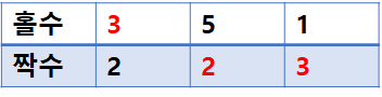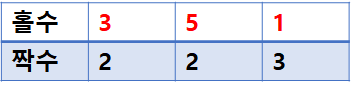 기본 아이디어는 직접 밑장빼기를 할 때 어떤 카드를 주게되는지 그려보면서 해보면 어렵지 않게 찾을 수 있다. 예제 입력 1 (3 2 5 2 1 3)을 홀수번째 카드(원래 정훈이가 받을 카드)와 짝수번째 카드(원래 상대방이 받을 카드)로 나눠서 그려보자.