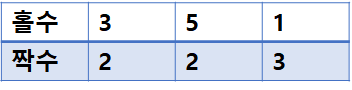 그럼 5번을 받을 차례 때 밑장빼기를 하면 어떻게 될까? '5'를 받을 차례에 짝수번째의 마지막에 있는 '3'을 받고, 이후 순서가 변경되면서 짝수번째를 정훈이가 받게 된다. 따라서 밑장빼기를 한 이후로는 짝수번째 카드를 받게 된다.