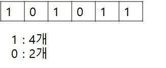 1은 4개이므로 2개를 지워야 한다. 0은 2개이므로 1개를 지워야 한다.