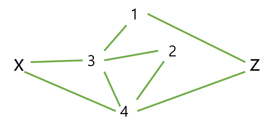 이 문제의 경우 z점으로 들어가는 모든 지점의 거리도 알 수 있어야 한다. 이것도 다익스트라를 응용해서 할 수 있는데, 무방향 그래프라면 z에서 시작하는 다익스트라를 돌려도 그 결과가 모든 점에서부터 z로 향하는 최단거리와 동일하다. (참고로 방향이 있는 그래프일 경우에도 다익스트라로 모든 점에서부터 한 점으로의 최단거리를 구할 수 있는데, 모든 간선의 방향을 역방향으로 바꾼 후 다익스트라를 돌리면 된다.)