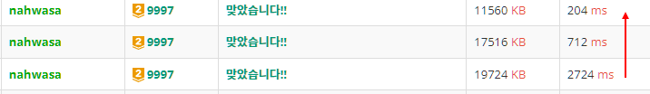 이렇게 짠 코드는 다음과 같다. 712ms가 나왔다.