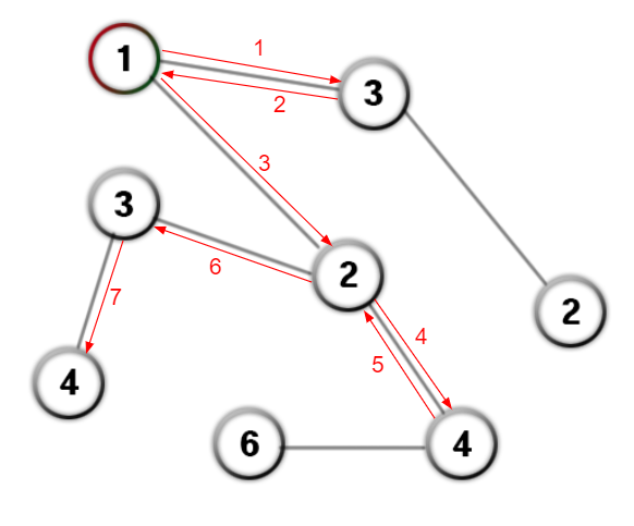 위는 모든 경우를 살펴보는 DFS 과정의 순서를 표시한 것이다. 모든 경우를 확인해보니 결국 1->2->3->4를 찾긴했다.