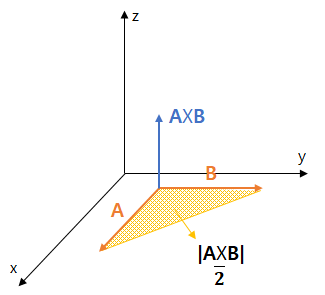 - 세 점의 좌표가 $a=(x_1, y_1, 0), b=(x_2, y_2, 0), c=(x_3, y_3, 0)$ 이라할 때, $\textbf{A}=\vec{ab}=(x_2-x_1, y_2-y_1, 0), \textbf{B}=\vec{ac}=(x_3-x_1, y_3-y_1, 0)$ 이다.