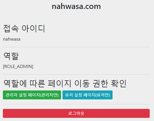 우선 ADMIN 권한으로 로그인 해봅시다. (nahwasa/1234)