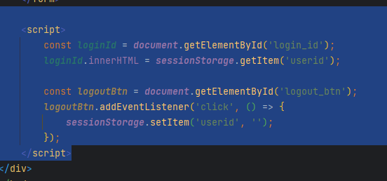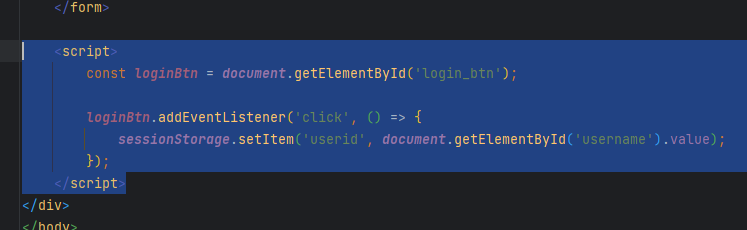 사실 로그인을 안해도 여기 들어올순 있어요! 하지만 접속 아이디는 안뜰꺼에요. 접속 아이디는 어딛냐면 웹의 sessionStorage에 있습니다! 그래도 hidden처리된 input에 넣어두진 않았네요.