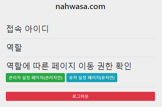우선 ADMIN 권한으로 로그인 해봅시다. (nahwasa/1234)