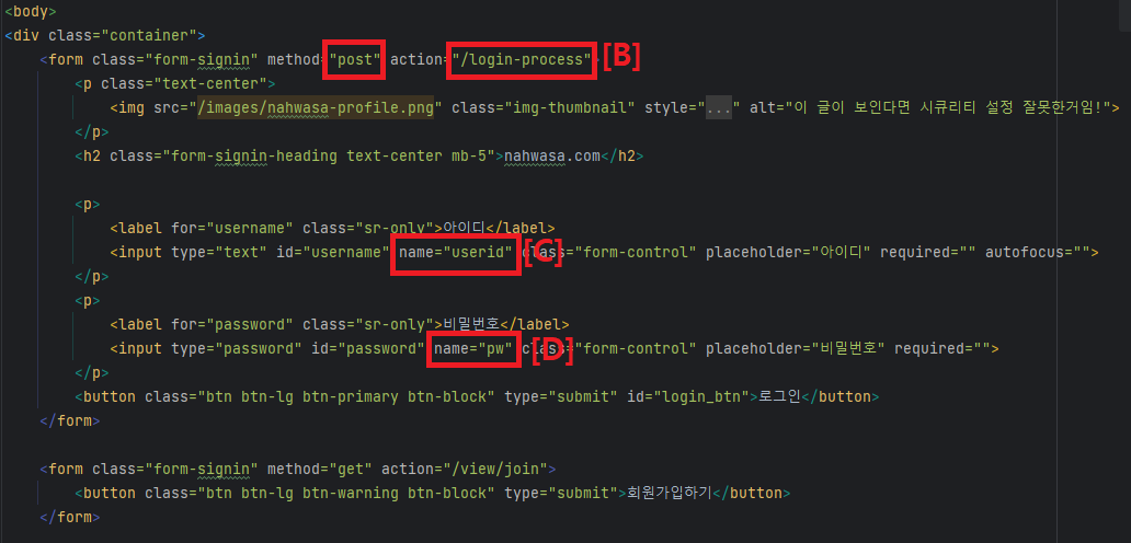 .loginProcessingUrl("/login-process") // [B] submit 받을 url