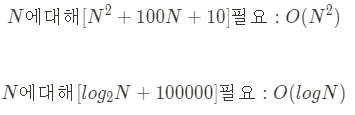 따라서 N^3 + N^2 + N 이런걸 해도 N이 100만되도 N^2과 N은 의미가 크게 없는걸 알 수 있습니다. 그래서 가장 큰 영향을 주는 항 위주로 표현합니다.