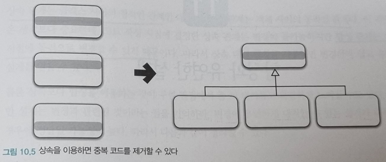 ⚈ 이번 장에서는 상속을 통한 코드 재사용을 알아보고, 11장에서 코드를 효과적으로 재사용할 수 있는 합성을 알아본 후 상속과 합성의 장단점을 비교하게 된다.