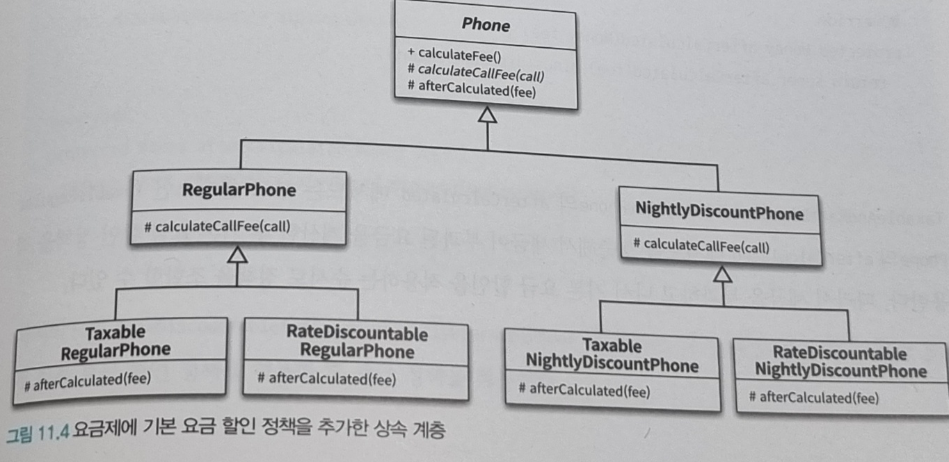 - 이렇게되면 TaxableNightlyDiscountPhone과 TaxableRegularPhone 사이에 코드를 중복했다는 문제가 발생한다.