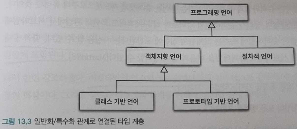 • 프로그래밍 언어 타입은 객체지향 언어 타입과 절차적 언어 타입의 슈퍼타입. 객체지향 언어 타입은 클래스 기반 언어 타입과 프로토타입 기반 언어 타입의 슈퍼타입.
