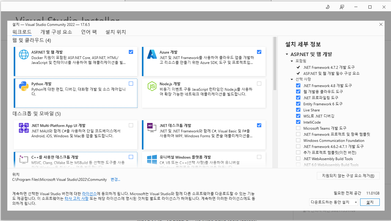 Visual Studio 설치