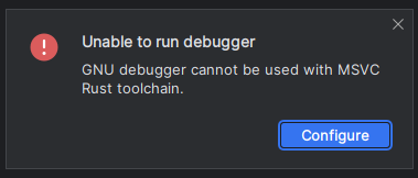 GNU debugger cannot be used with MSVC Rust toolchain.