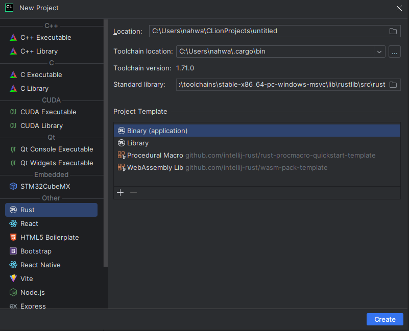 CLion에서 Rust 사용
