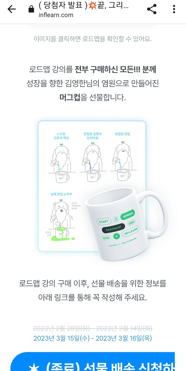 3월에 인프런에서 이벤트로 준 김영한님 머그컵이 도착했어요.