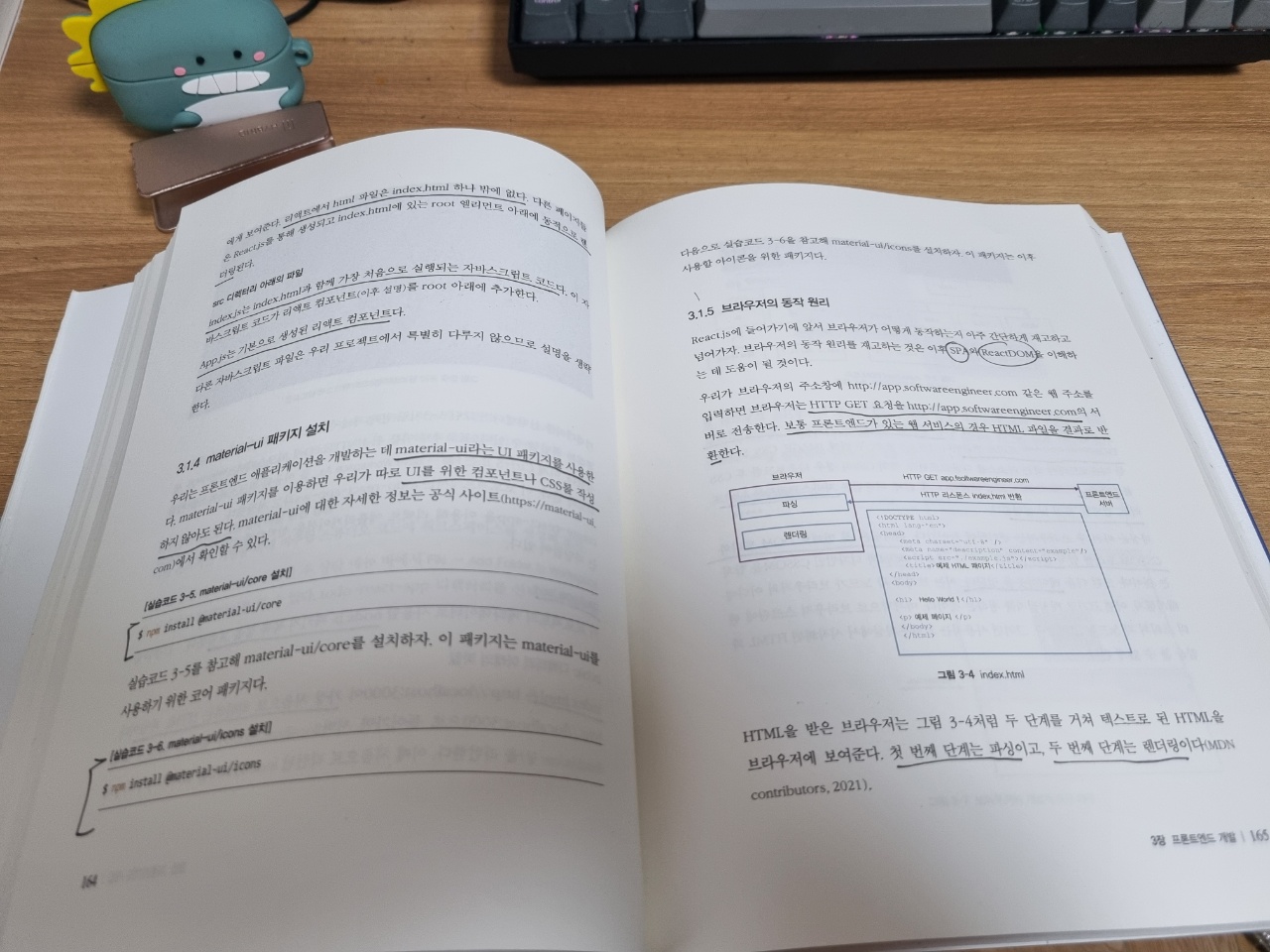 읽은 목적은 React를 배우기 위해서였다. 기존 스프링 부트와 함께 jsp를 사용해 js 위주로 짜는 프론트는 사실 좀.. 안멋있다. 개인 취향이다ㅋㅋ. 별로 상세하게 파고들어서 알고싶은 마음이 들지 않았다. 그래서 유명한 리액트는 내 입맛에 좀 맞을까 싶어서 한번 배워보고 싶었다.