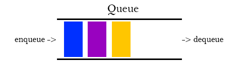 그림으로는 위와 같이 좌우가 뚫려있는 파이프와 같이 표현된다. 좌측으로 넣고, 우측으로 뺀다(한쪽 방향으로 넣고, 다른쪽으로 뺀다). 그럼 넣는 순서는 노랑->보라->파랑이 될 것 이고, 빼는 순서도 마찬가지로 노랑->보라->파랑이 된다.