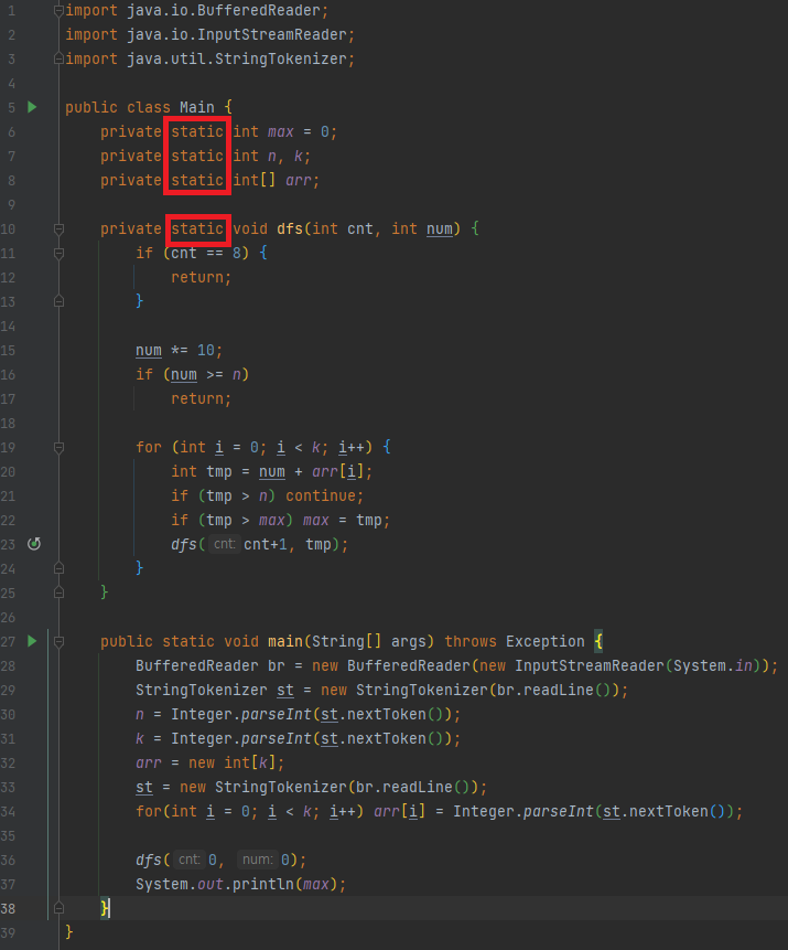 main문 자체가 static 함수이므로 거기서 사용하는 전역변수 및 모든 함수또한 static이어야 한다. 뭐 문제 푸는데 지장이 있는건 아니지만 그냥 static 안쓰면 동작이 안되니까 써둔걸로밖에 안보인다.