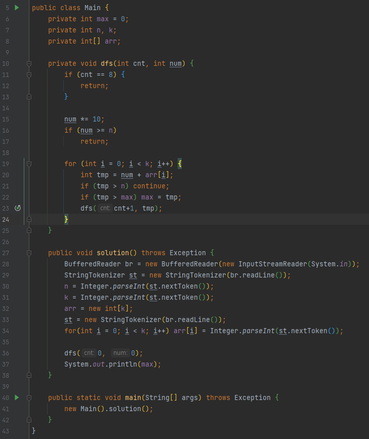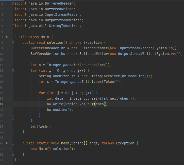 다음으로 BufferedReader와 StringTokenizer로 짠 코드는 다음과 같다.