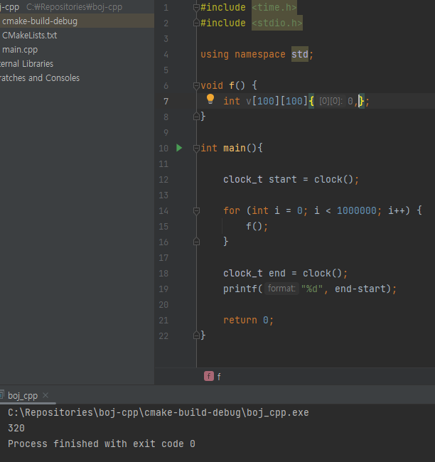 {0}으로 초기화해주면 320ms (역시 c++.. 엄청나게 빠르다;;)