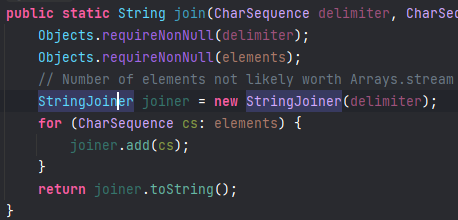 아래처럼도 합칠 수 있습니다. 내부적으로 StringJoiner를 사용합니다.