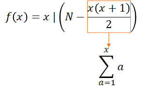 약간 생각을 바꿔서, 그럼 중간부터 시작되지 않고 항상 1부터 시작된다고 해보자. 즉, a까지의 합이라고 하면 1+2+...+a 가 N이라고 하면 어떨까? 이건 상대적으로 쉬워보인다. a는 최대 44720이니깐(44720x44721/2 = 999,961,560 이고, 문제에서 제시된 입력값의 최대치가 10^9 이므로 최대 44720 까지만 보면 된다.), O(44720)으로 찾을 수 있다. 그리고 a를 2부터 44720까지 증가시키면서 확인해보면 '만약 여러 개의 표현이 존재한다면, 가장 짧은 표현을 출력' 부분도 문제없이 처리할 수 있을 것이다.