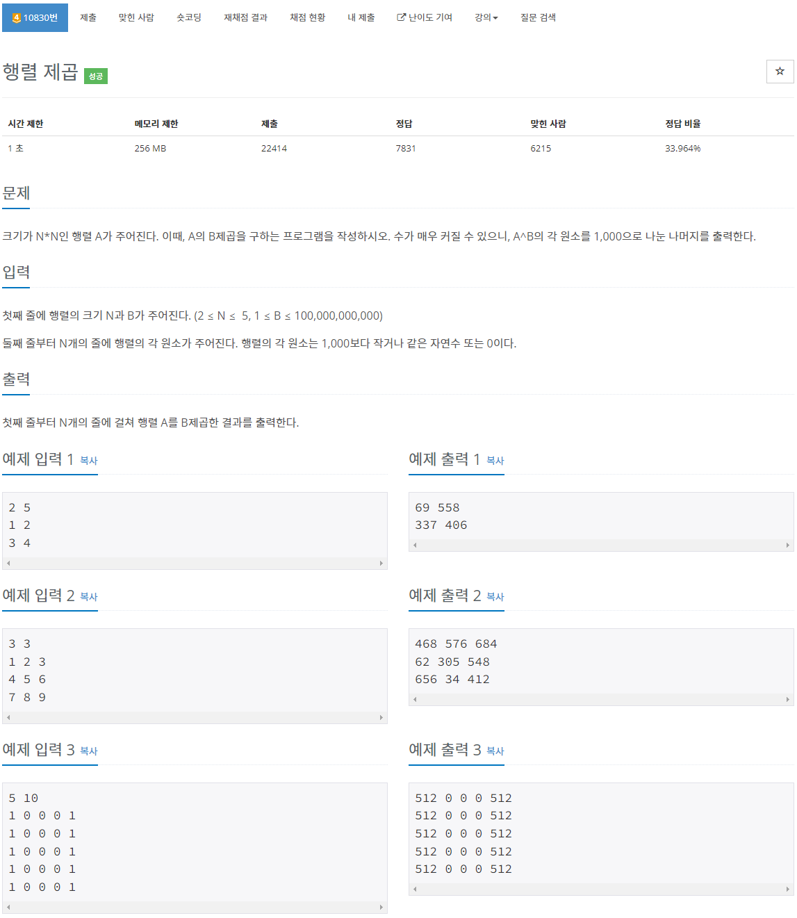 문제 : boj10830
