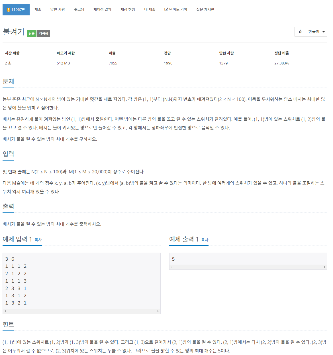___ 불이 켜져있다면 q에 추가해주고, 다음 인접한 방을 보러 간다.
