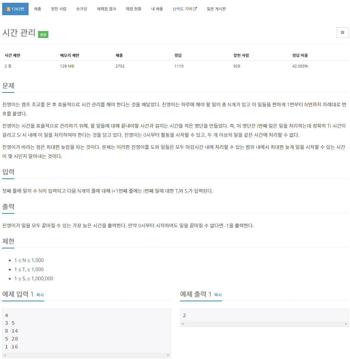 이 문제에서 물어보는건 모든 일을 끝낼 수 있는 가장 늦은 시간이다. 근데 좀 바꿔서 생각해보자. 애초에 모든 일을 끝낼 수 있나 없나를 어떻게 판단할 수 있을까?