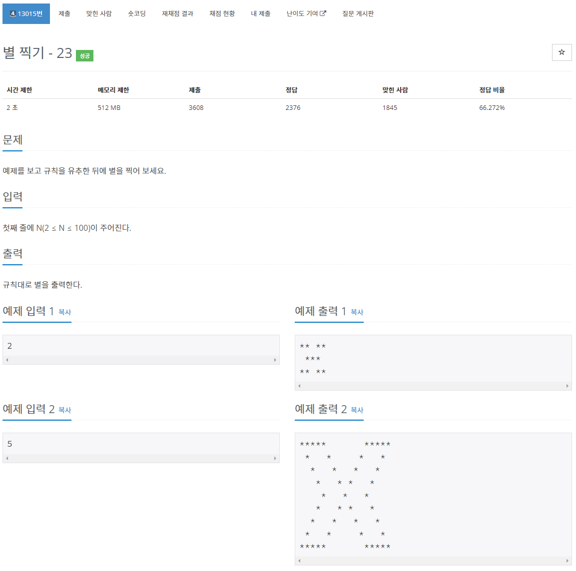주의점은 출력할 때 각 줄의 뒤쪽에 공백이 있으면 안된다.