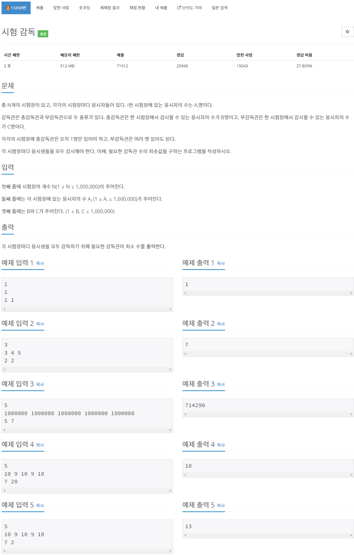 문제 : boj13458