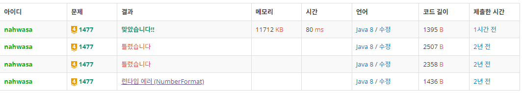 2년전에 못풀었다고 되어 있는데, 이번엔 어렵지 않게 풀었다. 발전하긴 한 것 같아서 기분 좋았다.