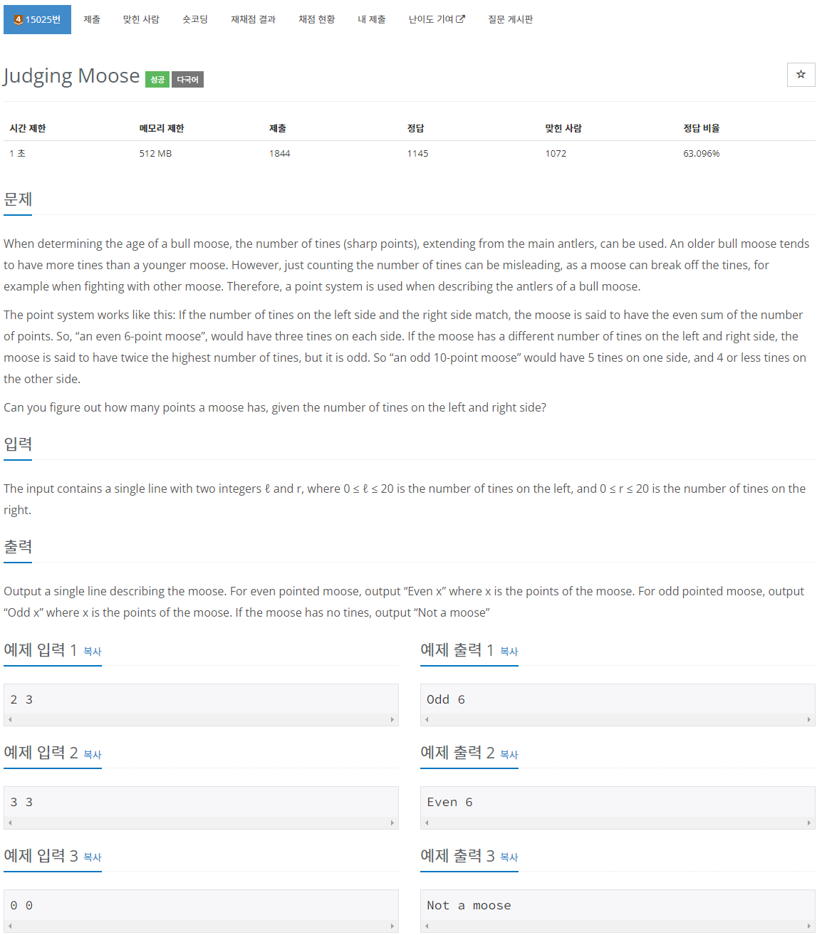 2. L과 R이 둘 다 0이면 "Not a moose"