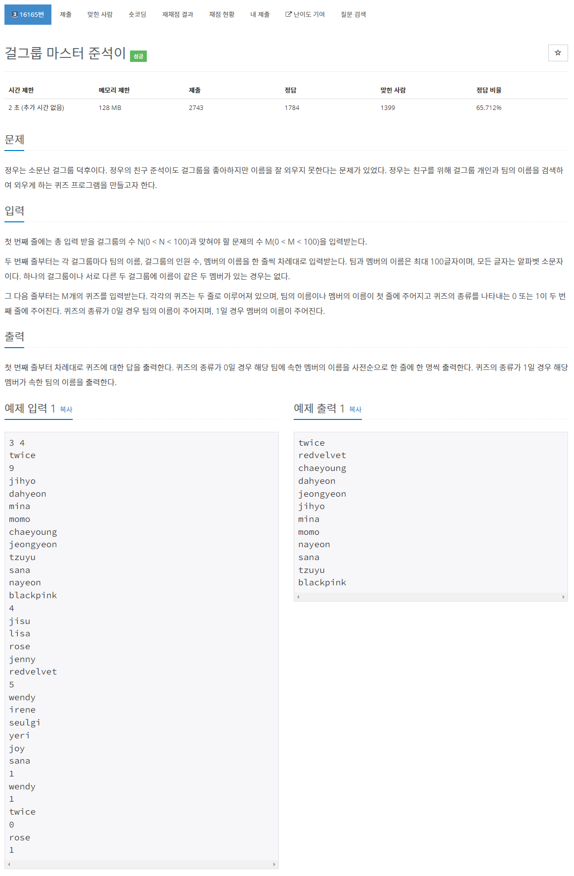 문제 : boj16165