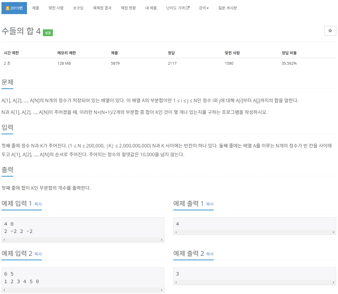 문제 : boj2015