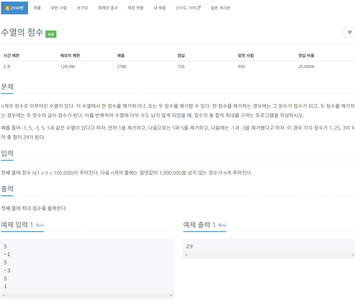 2. 음수에서 절대값이 큰 값부터 2개씩 뽑아서 곱해 답에 더해준다. 음수의 갯수가 홀수이면 절대값이 가장 낮은 음수가 하나 남는다. 이 때 0이 1개라도 있었다면 0과 곱해준다. 0이 없었다면 어쩔수없이 정답에서 빼줘야한다.