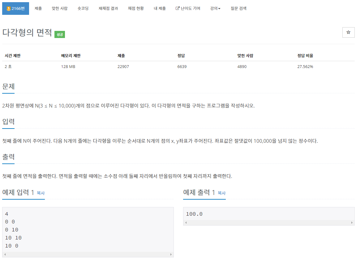 문제 : boj2166