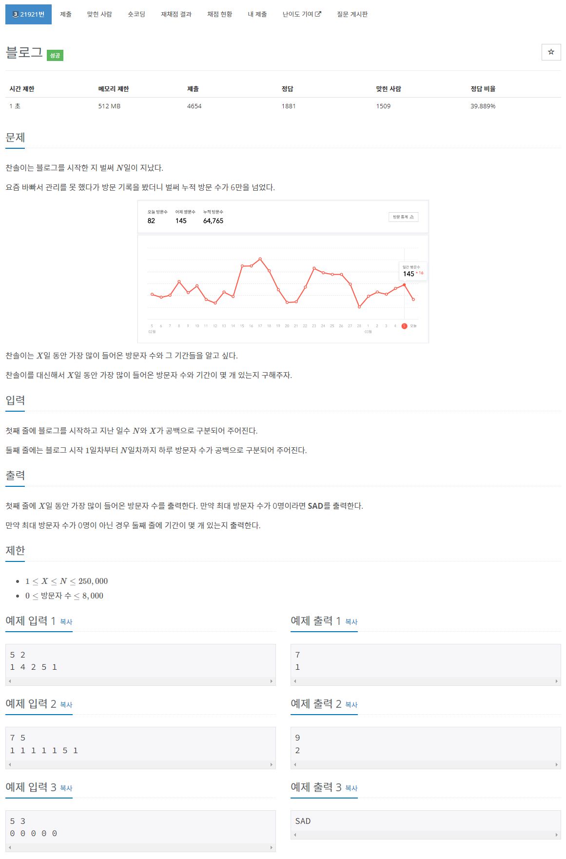 문제 : boj21921